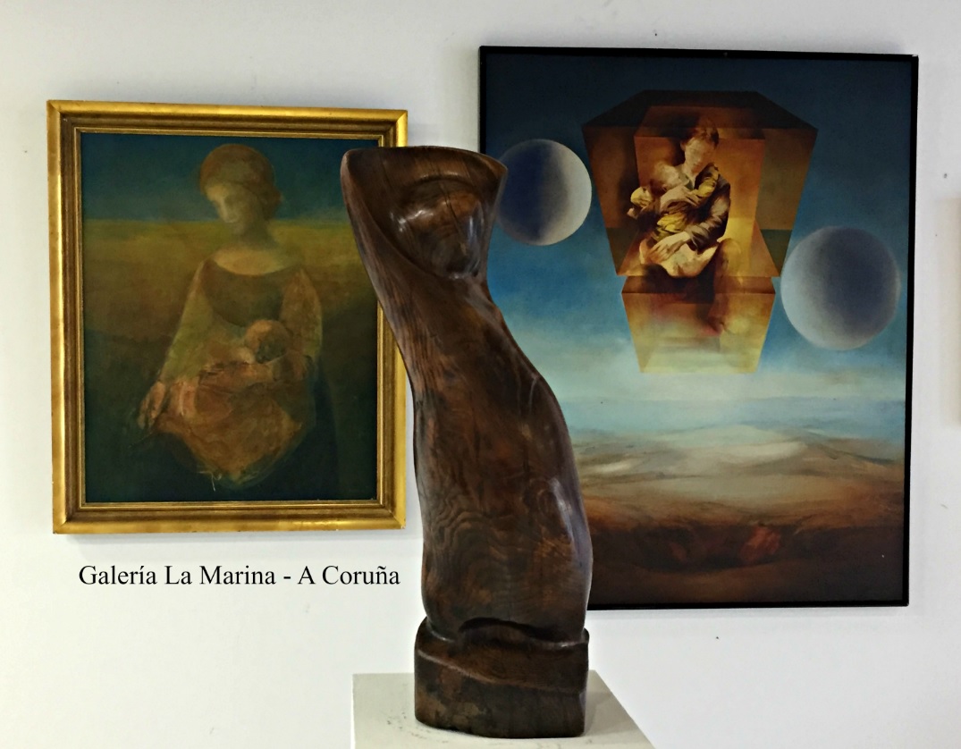 Piezas de escultura como complemento La exposición cuenta con varias obras escultóricas de artistas de la época. Destaca Xosé Eiroa, con dos obras en escayola, en las que se deja ver la influencia del Movimiento Renovador. Por otro lado tenemos a Uxío Souto, con una Druidesa en la que el nacionalismo romántico se combina con la vanguardia madrileña, de la que se empapó en los años veinte. Por último, hay que destacar un busto de Santiago Rodríguez Bonome en el que se adivinan los modos de Francisco Asorey (uno de sus maestros) y los gustos afrancesados del escultor.